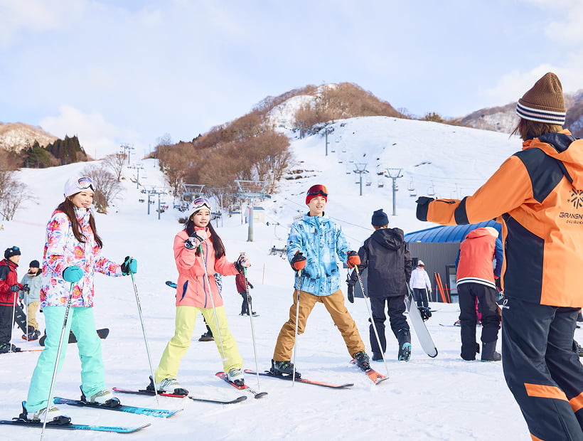GRANSNOW奥伊吹开设有结合学员水平、由专业人士授课的培训课程。即使完全不会滑雪,也不用担心!您可以参加适合您水平的课程进行练习!课程也可以提前在网上预订!