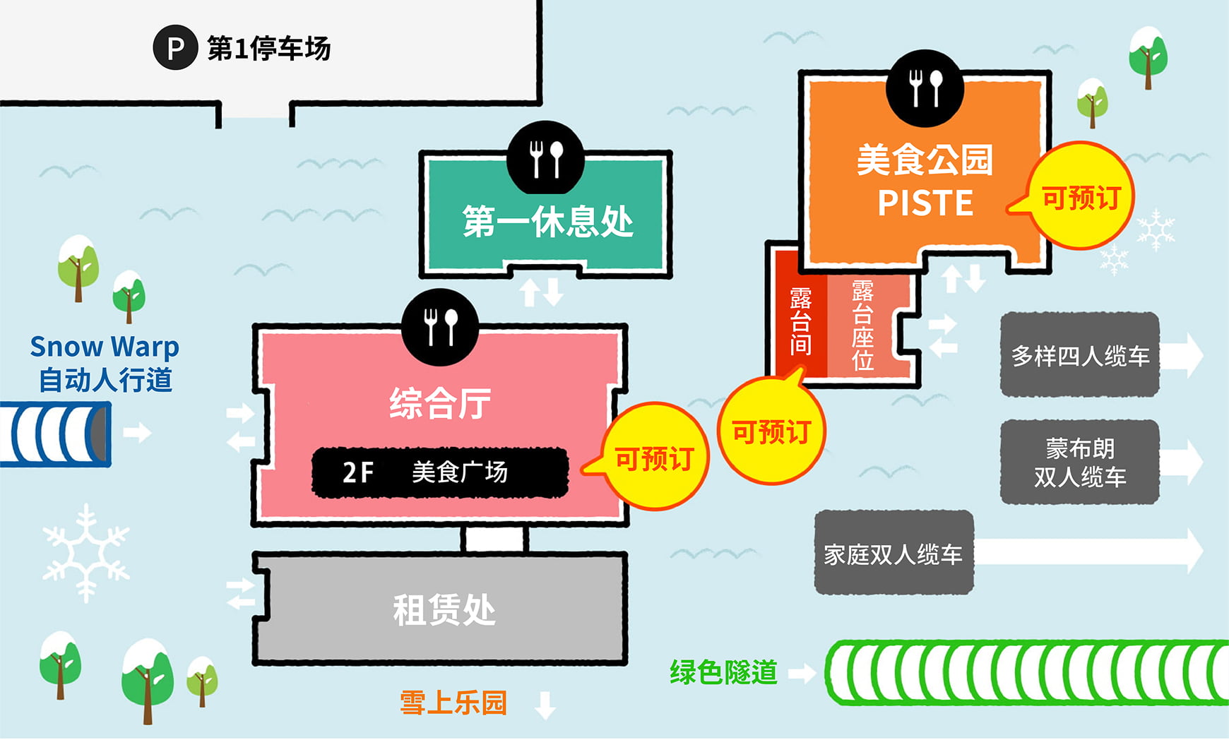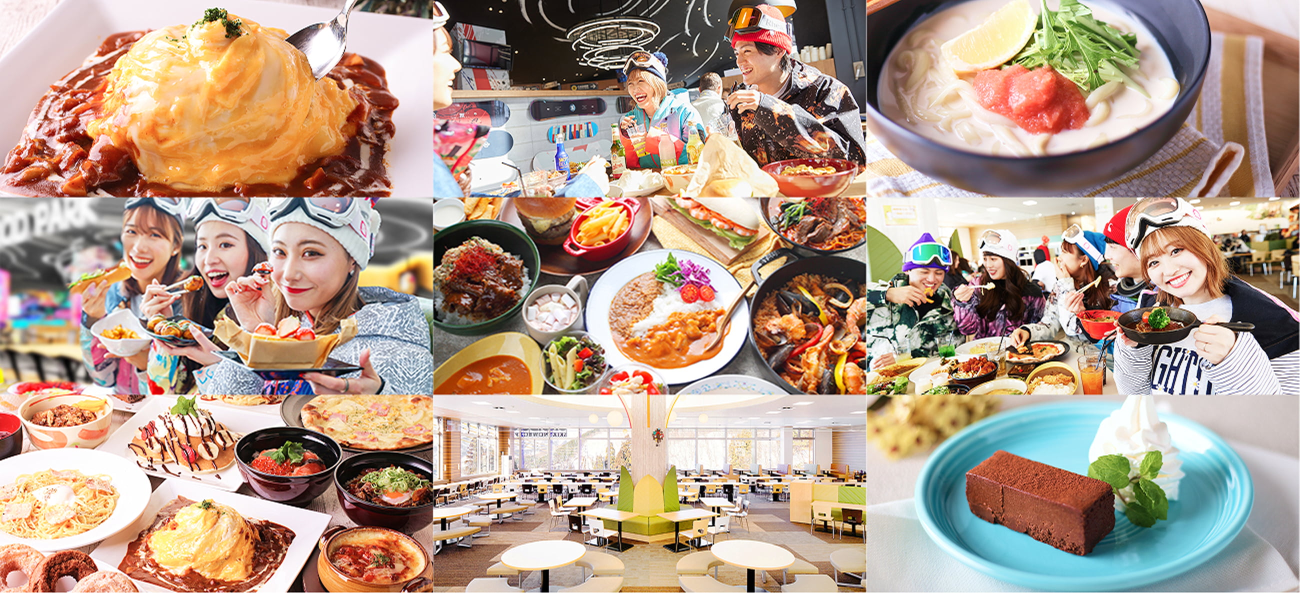美食公园PISTE是一个汇集了世界和日本美食的最新餐厅!拥有兼具酷帅和最尖端设施的室内座位、能够一整天悠闲享的露台间、能够眺望滑雪场的开放露台这3种座位!荟萃了世界和日本的极人气美食的约40种美味菜品,请务必品尝一下!