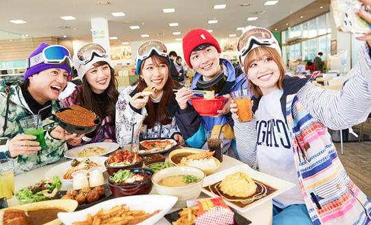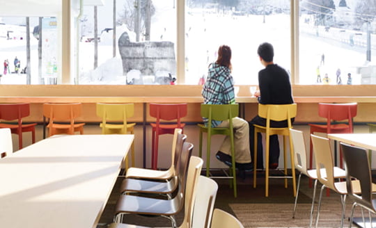 滑雪场入口的“第一休息处”在综合厅和租赁处附近,非常方便!除了乌冬面和咖喱饭外,还能够品尝到极人气的“芝麻拉面”。穿过寒冷的滑雪场之后,请品尝一份热气腾腾的餐食!