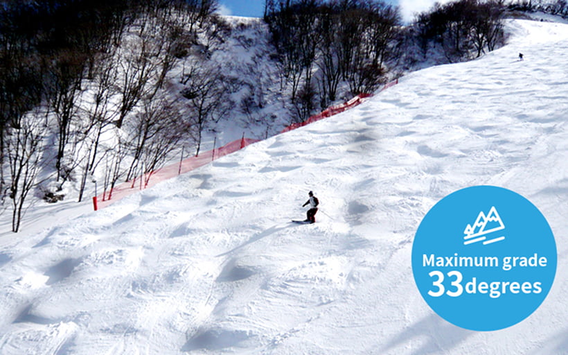这是最大斜度46度面向最高级者的滑道!宛如从雄伟的自然山脉上滑落般在陡坡上滑行的爽快感,是其他滑雪道无法品味的、这条滑雪道独有的特别魅力!如果下新雪,还能够享受最棒的粉雪滑行乐趣!