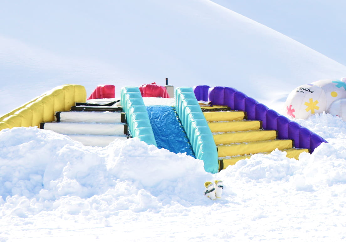 有很多孩子们喜欢的有趣游乐设施,例如可以跳跃的云朵气球和滑梯!也有许多GranSnow原创的可爱“软绵绵游乐设施”,孩子们可以尽情地玩一整天!