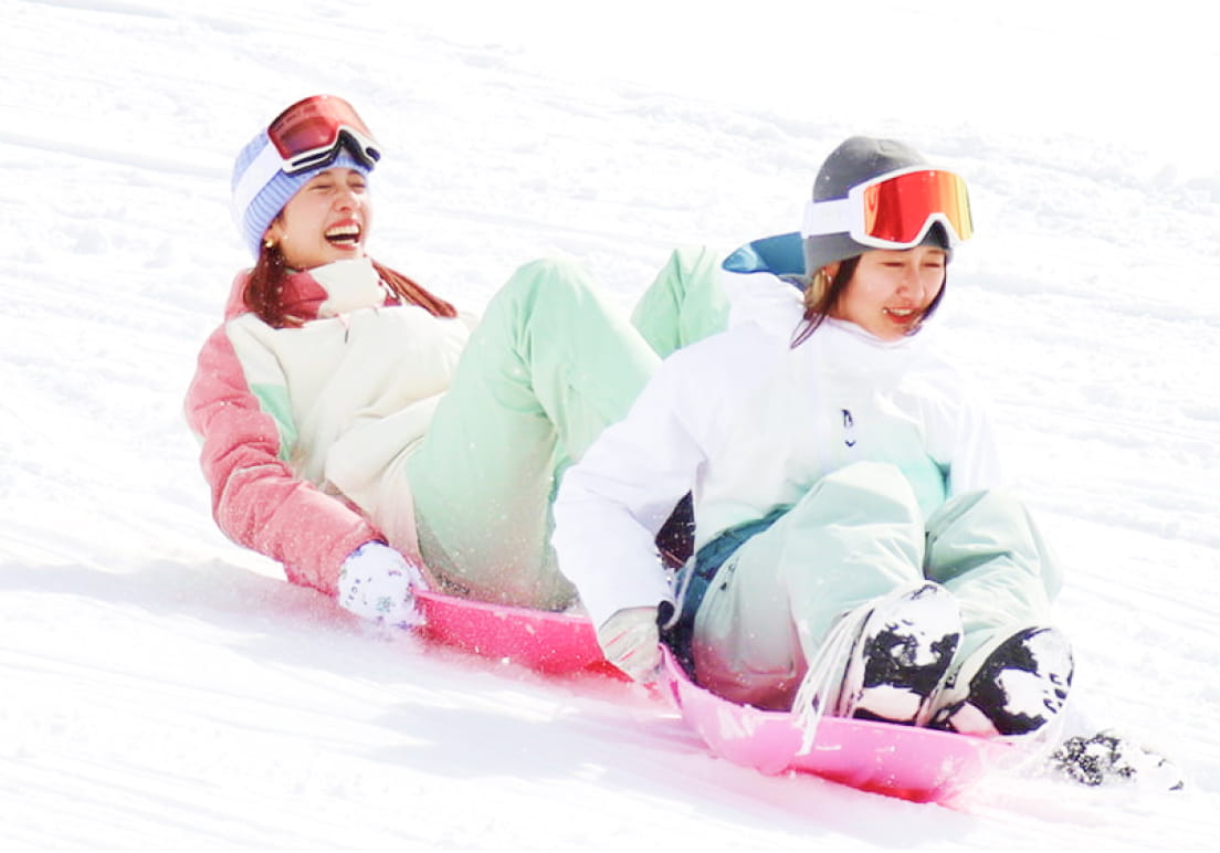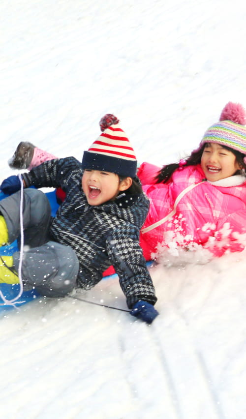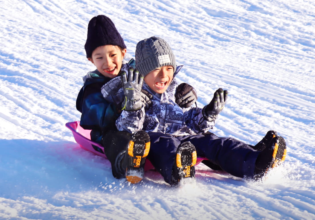 不仅孩子们,大人们也可以一起乘着雪橇冲下雪坡!滑雪橇是适合全家一起享受的雪地活动之一!租赁的雪橇是免费的,所以大家可以选择自己喜爱的雪橇尽情享受!