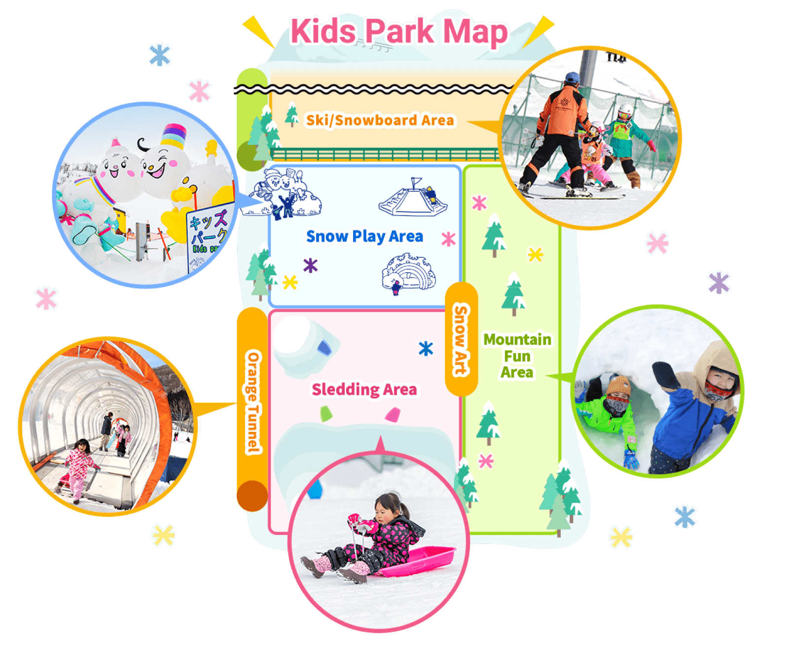 第一次玩双板滑雪板和单板滑雪板的孩子们也可以安心!可先让孩子们在儿童乐园旁边的双板滑雪板和单板滑雪板雪区练习,熟悉雪地,慢慢习惯滑雪!一旦学会了,就可以挑战其他的滑雪道了!